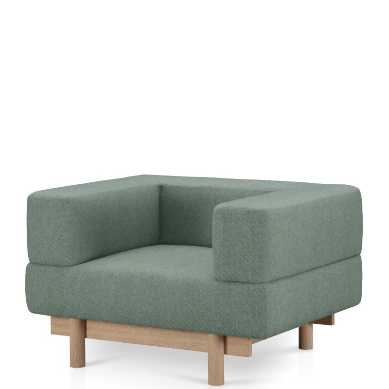 Le fauteuil minimaliste est chaleureux, avec sa base en bois, son assise en mousse haute densité recouverte de tissu Mainline Flax (75% laine vierge, 25% Flax). Fauteuil de style Japandi, qui mixe la simplicité japonaise et le confort naturel scandinave, idéal en fauteuil de salon, fauteuil d'hôtel ou fauteuil de bar et restaurant, ainsi que fauteuil pour accueil de bureau. Dans la même collection du studio Etc Etc, sont également disponibles les canapés deux et trois places et canapés d'angle avec méridienne à gauche ou à droite, ainsi que les poufs.