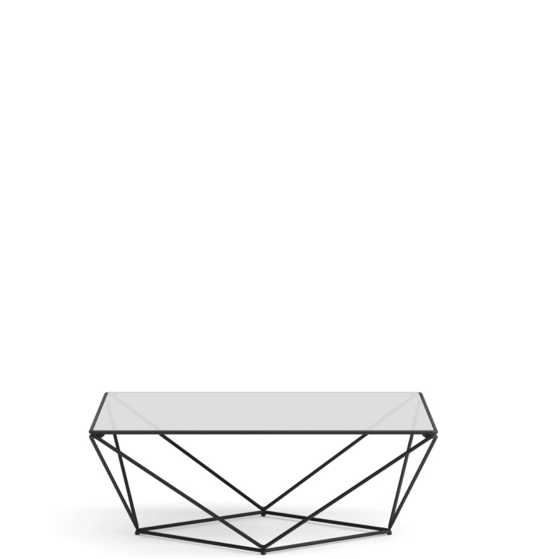 La table basse design est présentée ici avec un piètement métal laqué noir. 9 autres coloris sur demande au 01 53 30 33 30.