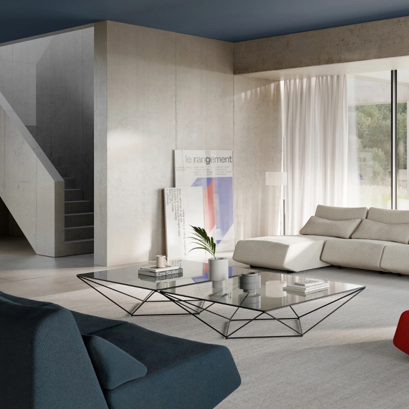 AVET est une table basse splendide dessinée par le collection Numen / for Use pour la marque croate Prostoria. Son style est basé sur un jeu de triangles, qui confèrent à cette table une originalité certaine. Le plateau en verre trempé fumé lui apporte quand à lui une élégance et légèreté. Voici les deux modèles, de 90 x 90 x H33 cm et 120 x 120 x H33 cm.