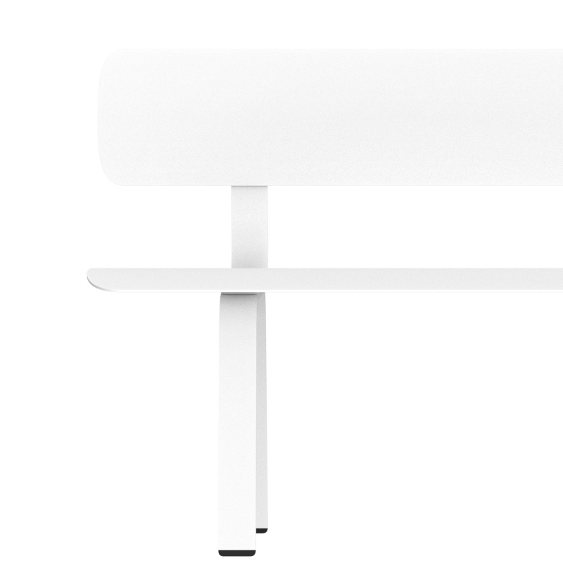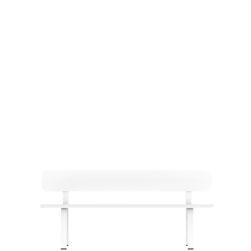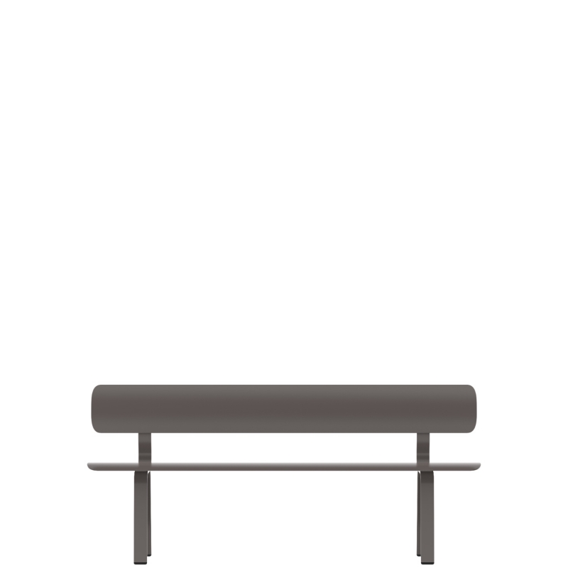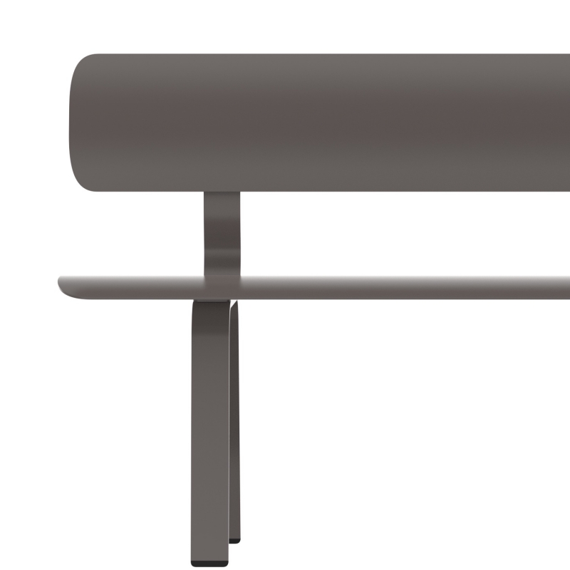 Le banc deux places de 1m80 mesure 52 cm de profondeur et 80 cm de haut, avec hauteur d'assise de 45cm. Décliné en blanc, blanc gris, vert sauge, brun oxyde, gris ou noir. Autres tailles et finitions (avec ou sans accoudoirs, dossier, électrification, piètement ciment, longueur de 2m40, 3m ou 3m60).