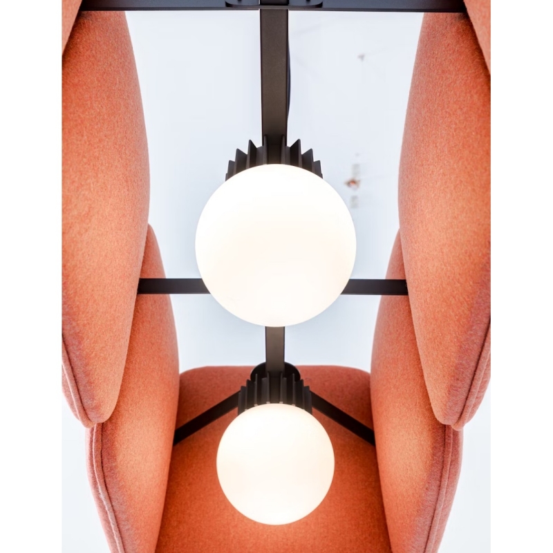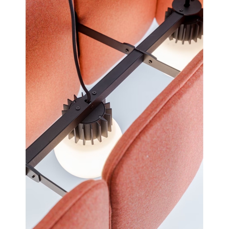 BUZZICHICLE est une suspension acoustique géante de la marque Buzzispace, dessinée par Common Object Studio. Lampe suspendue acoustique de 1m17 de long, pour 46 cm de profondeur et 40 cm de haut. Avec ses 3 globes led (2700K , 3000K or 4000K au choix) 1-10V ou compatible système à variateur DALI, la lampe suspendue est parfaite pour usage résidentiel - loft ou pièce avec grands volumes, mais également pour espaces publics (bars, restaurants, hôtels, collectivités, open-space).