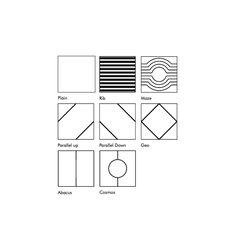 | Descriptif technique | Sans motifs ou avec 7 motifs en relief. Existe également avec motifs 3D avec supplément. |