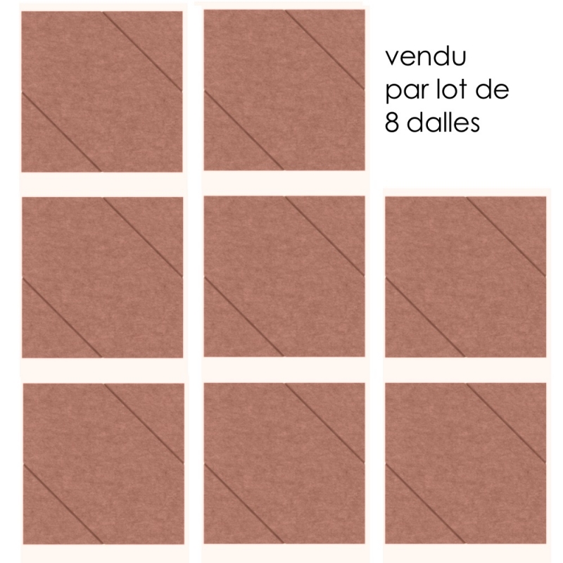 Chaque panneau acoustique mural carré mesure 59,5 cm de côté pour une épaisseur de 12 mm, idéal pour améliorer le confort acoustique et réduire la réverbération sonore. Vendus par lot de 8 dalles de même couleur, ces dalles acoustiques vous permettent de créer une composition personnalisée selon votre espace. 15 coloris sont disponibles (voir nuancier) sur demande au 01 53 30 33 30.