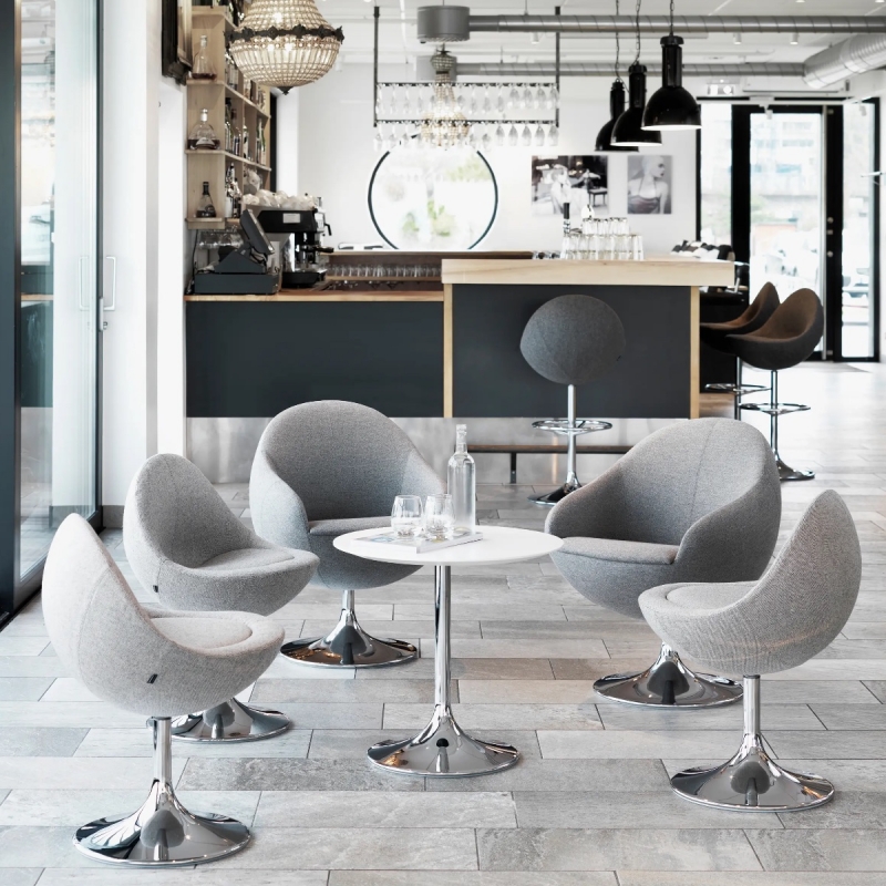 COMET est un fauteuil lounge original de design scandinave. Conçu dans les années 60, il est réédité en Suède par Johanson Design, le fauteuil rotatif est idéal pour salon, mais aussi pour projets hôteliers, ou collectivités. Le fauteuil design englobant mesure 79 x 64 cm x H 79 cm (assise de 44 cm de haut). Son assise avec mousse haute densité est ultra confortable et sa structure métallique chromé (noire, blanche ou autre coloris originale sur demande au 01 53 30 33 30).
