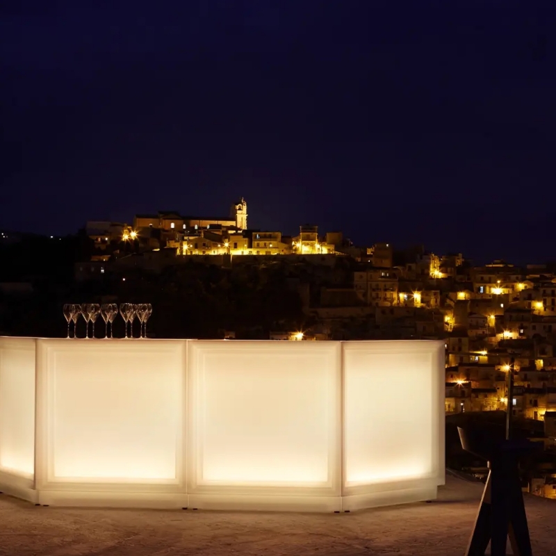 Fabriqué en Poleasy®, un polyéthylène breveté par MyYour et doté d’une surface à 99 % non poreuse, le bar offre une résistance exceptionnelle aux chocs et aux intempéries, tout en étant extrêmement facile d’entretien.