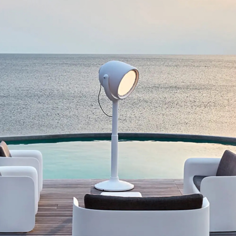 Hollywood est un lampadaire extérieur design de la marque italienne Myyour, inspiré des projecteurs de cinéma pour créer une ambiance industrielle contemporaine. Véritable élément décoratif, ce lampadaire de jardin orientable structure l’espace, en apportant un éclairage puissant et chaleureux.