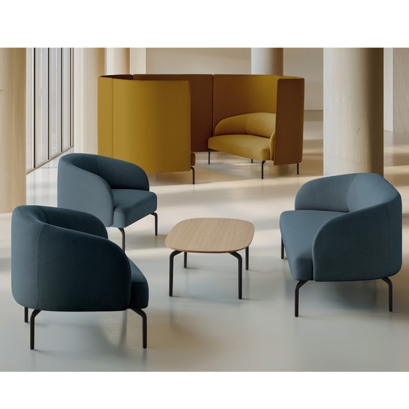 Idéal comme fauteuil de salon contemporain ou pour des espaces publics design (hall d’hôtel, restaurant, bar, coworking, accueil professionnel), il s’intègre avec harmonie dans tout type d’environnement. En option, possibilité de lui ajouter un dossier haut pour écran de confidentialité.