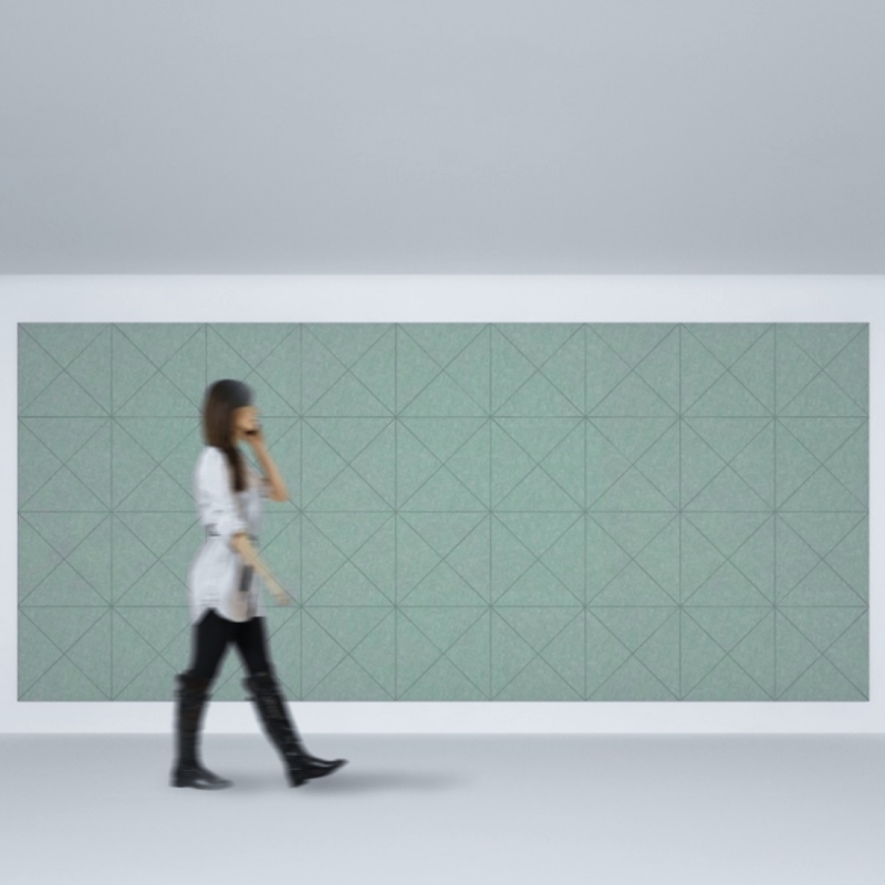 Disponible en deux dimensions — 120 x H280 cm (12 mm) ou 180 x H240 cm (24 mm) — KINGSCROSS habille les murs avec raffinement. Son système de fixation invisible, breveté et sans colle, garantit une installation propre et durable. Assemblés côte à côte, les panneaux dessinent une composition en chevrons dynamique, créant un absorbeur mural XL aussi graphique qu’efficace.