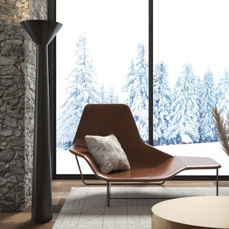Équipé d’un plafonnier LED de 22 W délivrant 3400 lumens, il diffuse une lumière blanc chaud 3000 K (2700 K disponible sur demande). Original et élégant, ce lampadaire contemporain est proposé dans un large choix de finitions : noir, blanc, vert, bordeaux mat ou laiton.