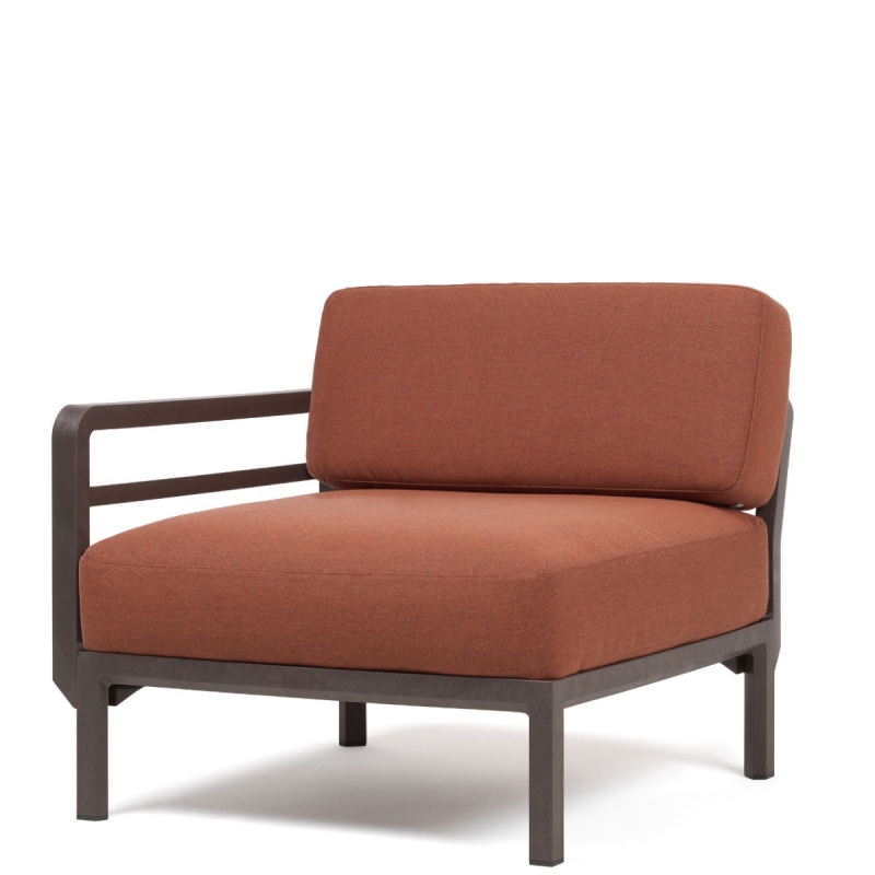 MAXIMO est la nouvelle collection de fauteuils et canapés de jardin dessinée par Raffaello Galiotto pour Nardi, marque italienne de référence du mobilier d’extérieur contemporain. Cet élément avec accoudoir (à gauche ou à droite, selon la configuration choisie) est destiné à la création de canapés modulables.