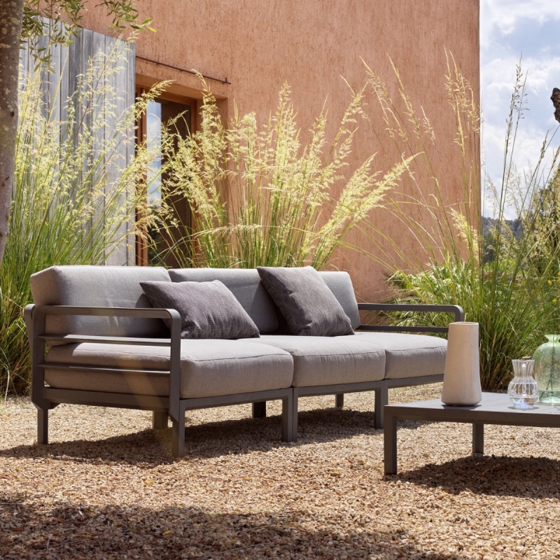 La collection MAXIMO se distingue par son haut niveau de modularité : tous les éléments — dossiers, accoudoirs, tablettes, poufs et coussins — sont entièrement amovibles et se fixent facilement entre eux, permettant de composer librement un salon d’extérieur personnalisé, selon vos envies et vos besoins.