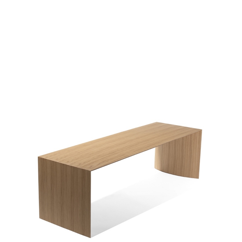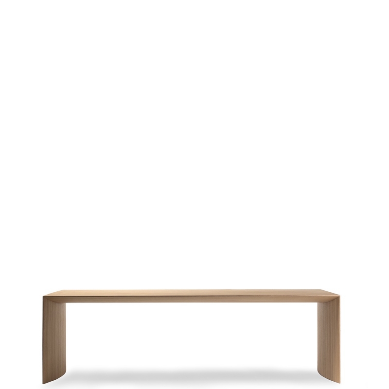 Disponible en plusieurs versions, voici le plus grand modèle, de 1m46 de long pour 46 cm de profondeur et 44 cm de hauteur d'assise. Il pèse 20.5 kg. Le banc moderne offre une assise confortable et durable, soulignée par un fini chêne naturel et des détails elliptiques caractéristiques du savoir-faire italien.