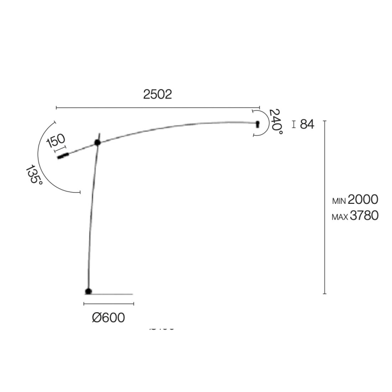 Le lampadaire LED design NINO SBRACCIO signé Zava Luce incarne l’excellence du design italien contemporain. Avec son style minimaliste et aérien, ce lampadaire déporté de grande envergure (hauteur réglable de 2 m à 3,70 m, portée de 2,50 m) est la pièce parfaite pour illuminer une table à manger, un salon spacieux ou toute pièce au style moderne.