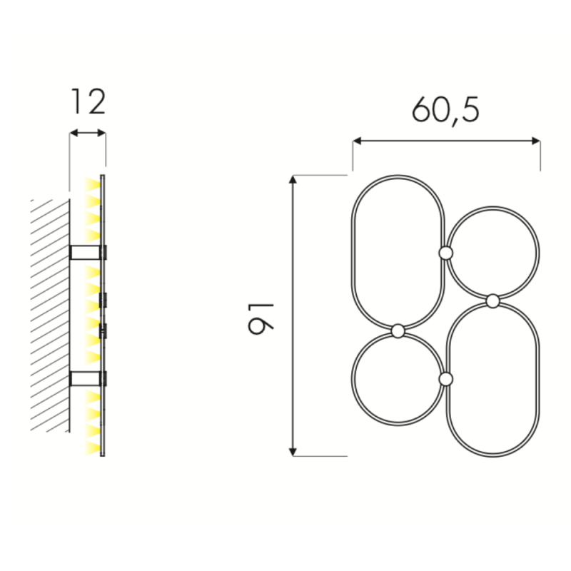 Avec ses 91 cm de hauteur, 60 cm de largeur et seulement 1,2 cm de profondeur, NONAME APR4 est graphique avec ses deux ronds et deux ovales. Applique murale de couloir moderne, applique murale de salon design, applique murale de chambre minimaliste ou applique murale de salle à manger contemporaine. Applique murale design LED intégré de 51W disponible en 2700K ou 3000K, compatible variateur TRIAC (transformateur inclus).