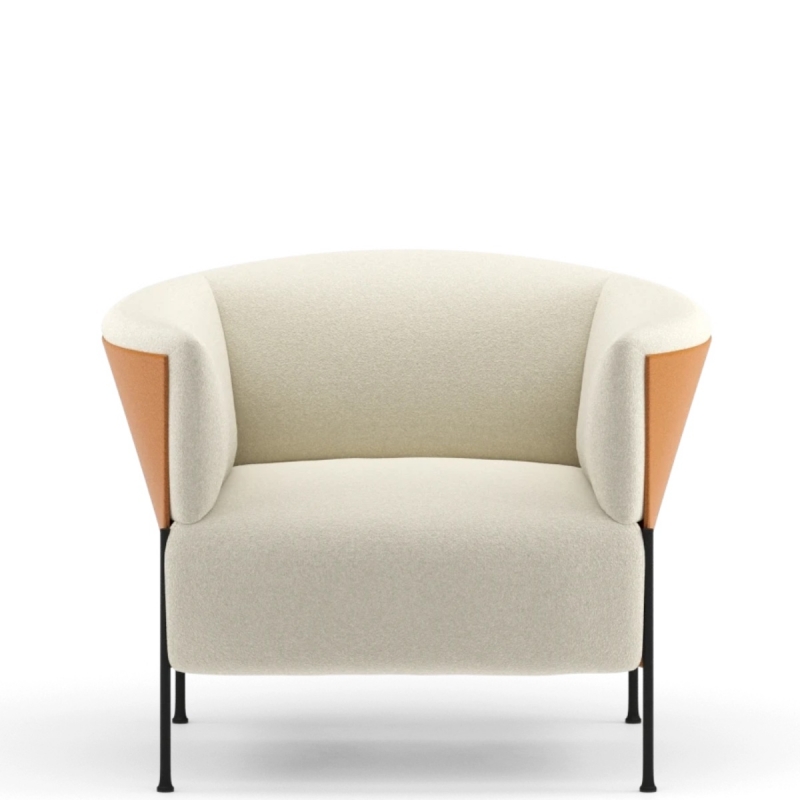 Coque et assise disponible en tissu ou cuir, dans une vaste gamme de coloris, il est personnalisable jusque dans le choix des pieds (métal ou bois). OMNIA s’intègre aussi bien dans un intérieur résidentiel élégant qu’un bureau de direction, un hall d’hôtel ou un espace d’accueil design.