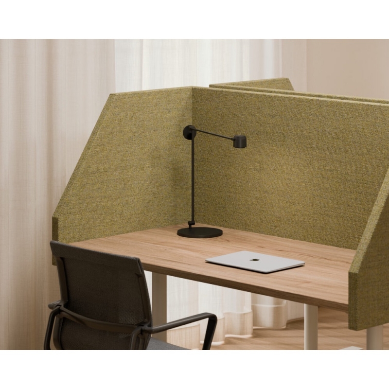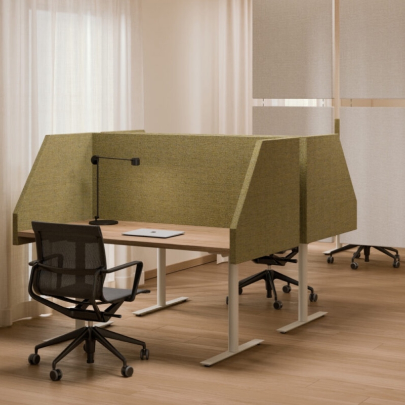 La cloisonnette acoustique structure les postes de manière fluide tout en garantissant une réduction efficace des nuisances sonores. Installé via son équerre de serrage, il atteint 52 cm au-dessus du plateau afin d’offrir un niveau de confidentialité idéal.
