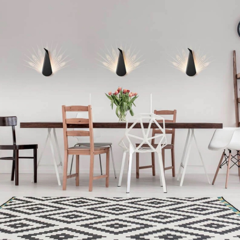 PAON est une applique de la designer israélienne Chen Bikovski, pour l'éditeur français Compagnie Editions. Eteinte, l'applique est de forme originale géométrique très épurée de 36 x 14 cm. Allumée, la lumière projetée au mur dévoilé les plumes du Paon. Majestueuse, l'applique prend alors toute sa mesure, et créé dans la pièce une atmosphère chaleureuse et originale. Dans la même collection, découvrez la tête de cerf !