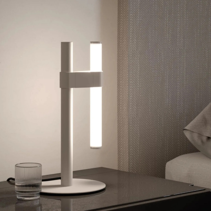 PARALELA est une lampe minimaliste du Nahtrang Studio pour la marque de luminaires design italien hauts de gamme Axolight. La lampe de table à variateur d'esprit industriel peut aussi bien être utilisée en lampe de chevet originale, lampe de bureau ou lampe de salon. Jolie lampe avec structure et diffuseur en verre opale tubulaire de 3 cm de diamètre.