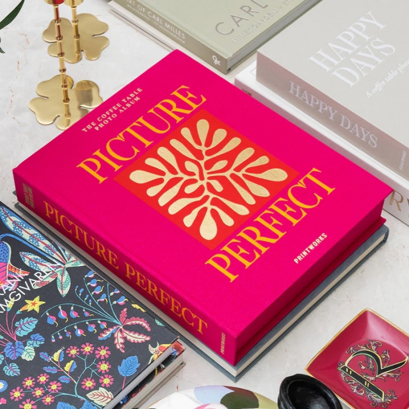album photos luxe PICTURE PERFECT avec couverture rigide fuschia, gaie et joyeuse. Comme un livre d'art, l'album se dépose nonchalamment sur la table basse ou dans un bibliothèque, et devient un objet décoratif. Album photo extra-large de 27 x 5 x H32 cm. Une très belle idée cadeau pour tous les âges, qu'ils s'agissent d'amis, membres de la famille par exemple.