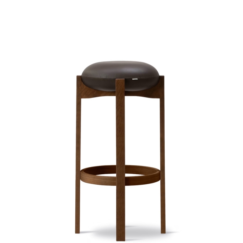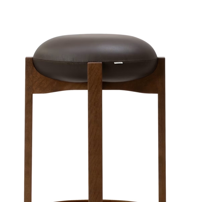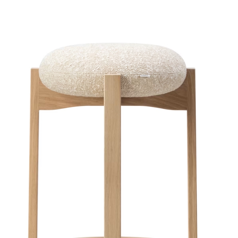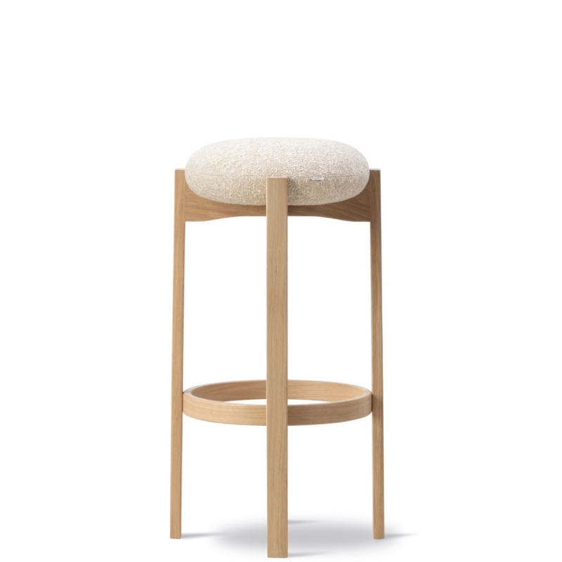 Les tabourets de bar Pioneer sont une splendide création de Maria Bruun, édités au Danemark par Fredericia. Le tabouret haut se distingue par une expression sculpturale forte, alliant confort d’assise et fonctionnalité. Les quatre pieds verticaux en bois se rejoignent dans une composition en croix subtilement creusée, sur laquelle vient se poser un coussin d’assise léger et tapissé. En contrepoint, le travail précis de l’évidement sous l’assise vient parfaire l’ensemble et renforcer la dimension artistique du tabouret. Voici deux finitions :