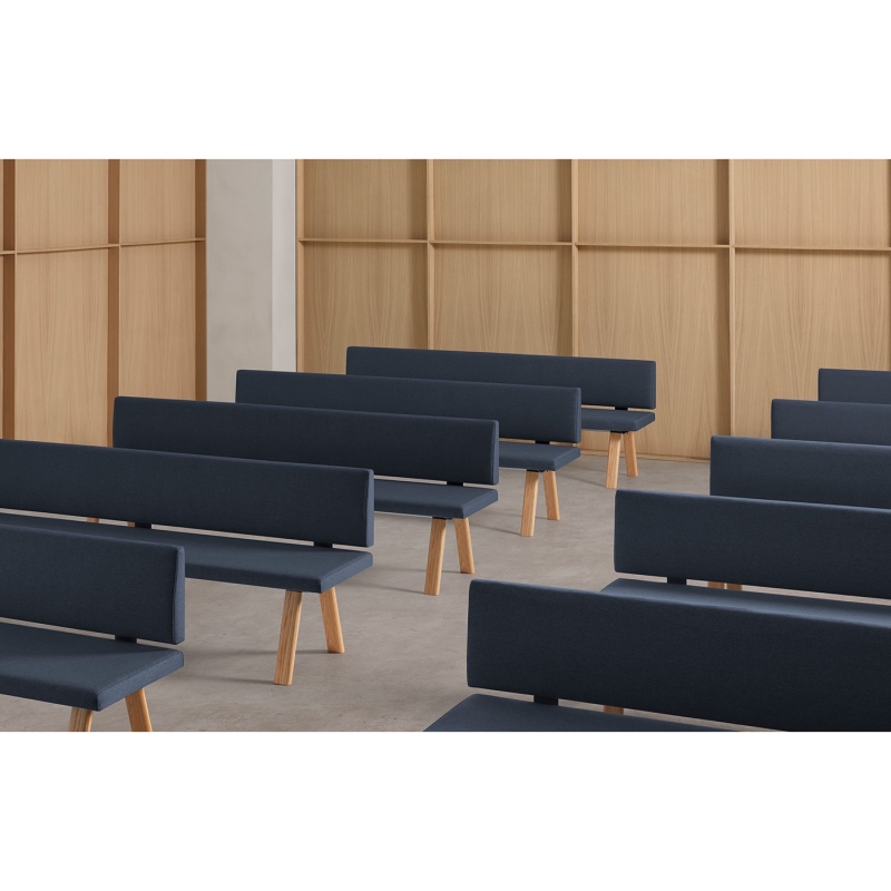 Demander un devis| Matériaux | Piètement chêne. Assise tissu Cora catégorie 2 (polyester). |
