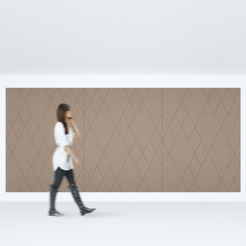 Proposée en deux dimensions — 120 × H280 cm (épaisseur 12 mm) ou 180 × H240 cm (24 mm) — la dalle acoustique PRISMA habille les murs avec une sobriété raffinée. Son système de fixation invisible, breveté et sans colle, assure une installation nette, rapide et durable. Juxtaposés, les panneaux acoustiques composent un tableau graphique qui dessine un absorbeur mural XL aussi esthétique qu’efficace. La livraison est proposée à un tarif forfaitaire de 500 € HT, quelle que soit la quantité commandée.