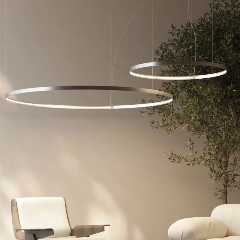 RINGS est une création de Valério Cometti du studio V12 Design, éditée par Zava. Un arceau en aluminium peint blanc (noir et laiton bruni sur demande), à l’intérieur duquel est placée une bande led. Chaque arceau de différentes tailles (diamètre 30, 40, 50, 80, 115, 135 mais aussi 145, 150, 190,200, 250, 300, 350 ou 400 cm sur demande) peut être installé individuellement, ou combiné. Vous choisissez donc votre luminaire et l'orientez au gré de vos envies / besoins en éclairage. Étant donné le nombre infini de possibilités, contactez nous au 01 53 30 33 30 pour obtenir la grille tarifaire.