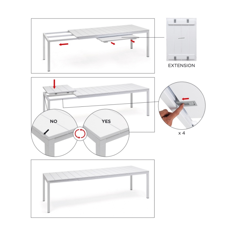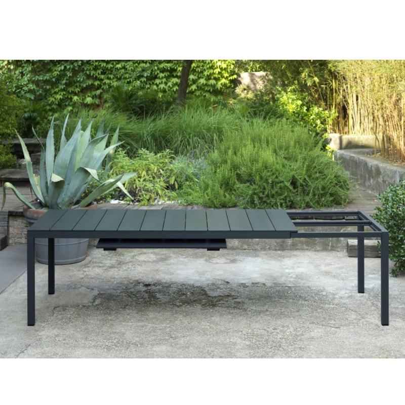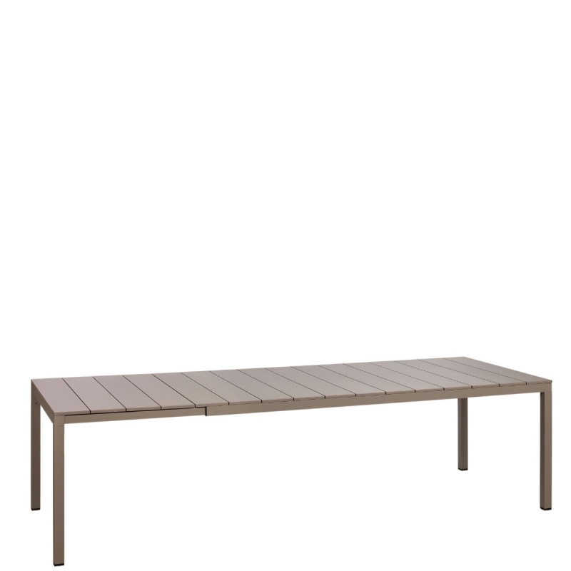 RIO ALU 210 est une table extensible d'extérieur de 10 à 12 personnes. Table de jardin extensible de design italien, de la marque Nardi. La table dispose d'un plateau et structure en aluminium vernis blanc anthracite ou taupe mat.