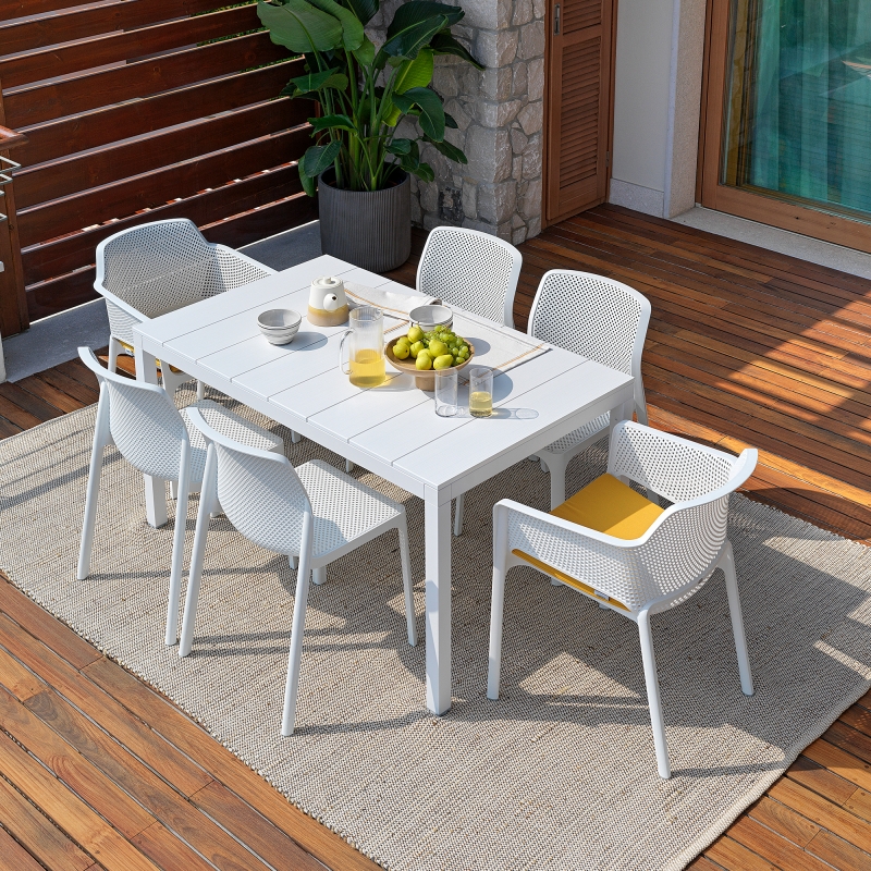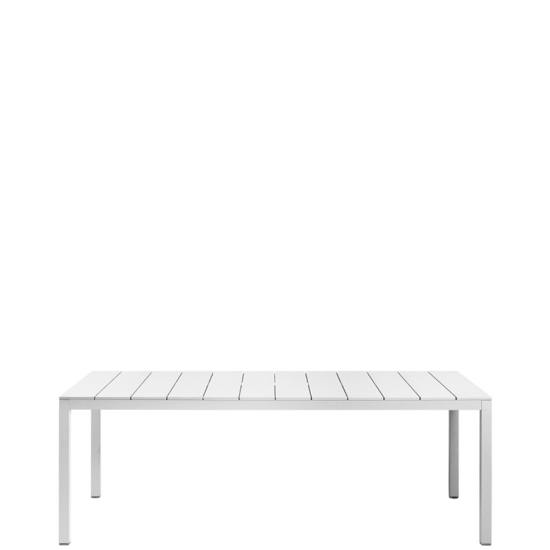 RIO ALU 210 est une table d'extérieur de 10 personnes de la marque de mobilier design italien Nardi. Table de jardin en aluminium verni blanc, gris anthracite, taupe mat.