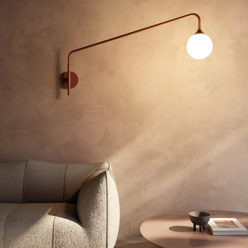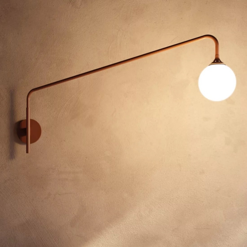SAN BABILA est une applique design italien de Meneghello Paolelli Associati de la marque Zava Luce. Voici l'applique avec bras directionnel de 1m85 de long, son abat jour en verre opale mesure 20 cm de diamètre. Douille E14 max 42W (ampoule non incluse).