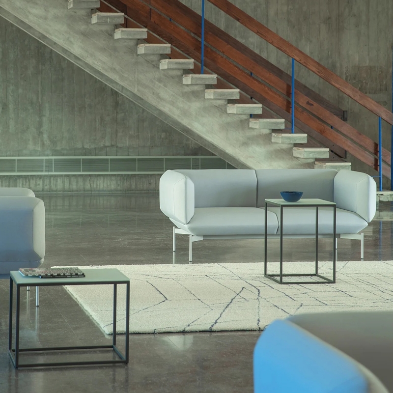 SEGMENT est un canapé minimaliste géométrique qui joue avec les angles droits et 45°. Voici le canapé 2 places de 1m57 de long en tissu de catégorie 400 (autre catégories, couleurs et tissus sur demande). Compact, il est de 84 cm de profondeur pour 70 cm de haut (l'assise est de 38 cm de haut pour 68 cm de profondeur). Ultra confortable, ses coussins sont en mousse à froid et ouate de polyester. Le tissu Le piètement en métal laqué donne une légèreté à ce canapé atypique, sorti tout droit de l'imagination de Numen for Use, et édité en Croatie par Prostoria. Dans la même collection, découvrez le canapé 3 places, canapé modulable, fauteuil et table basse.