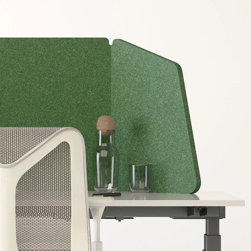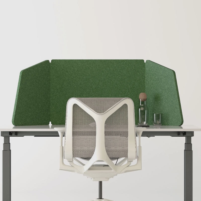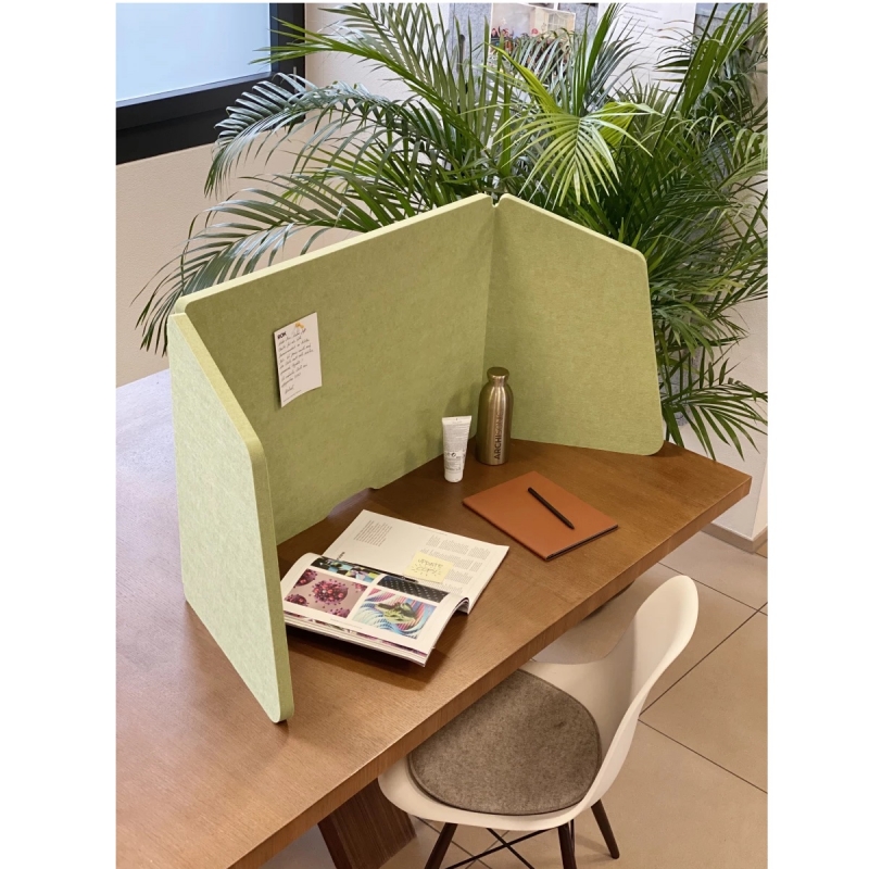 La cloison de table acoustique est en PET Archisonic® Felt issu de bouteilles plastiques recyclées. Déclinée dans 34 couleurs au choix - contactez nous au 01 53 30 33 30 pour définir votre choix.