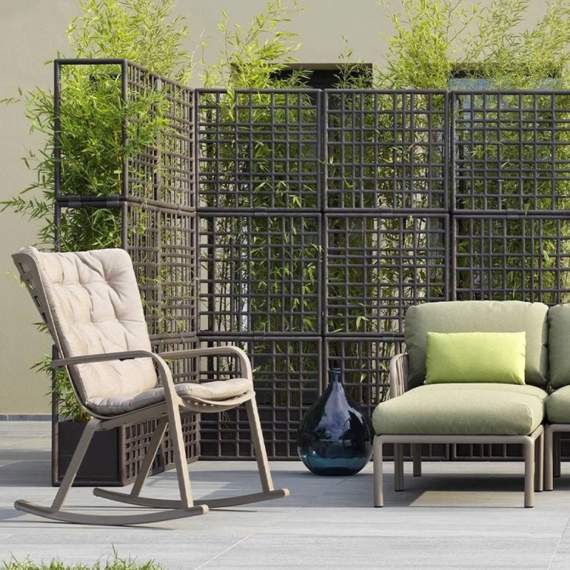 La cloison extérieure modulaire autoportante Sipario 3 de Nardi permet de structurer les espaces extérieurs selon vos envies. Entièrement configurable, elle se compose de 3 panneaux grillagés qui s’assemblent sans vis, ainsi que d’un pot de fleurs avec système d’auto-arrosage intégré. Les modules peuvent être empilés jusqu’à une hauteur maximale de trois éléments.