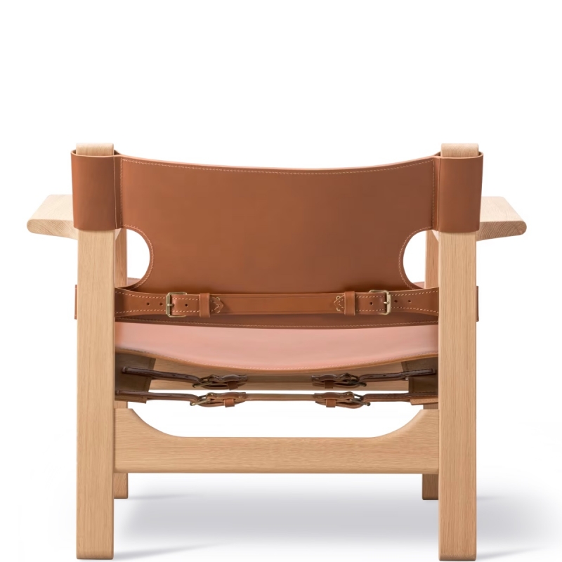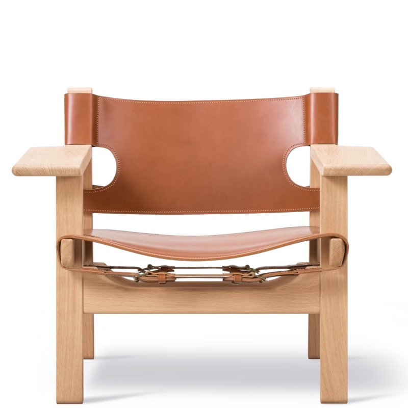 Le fauteuil Spanish Chair, dessiné en 1958 par Børge Mogensen pour Fredericia, est une pièce iconique du design moderne. Véritable démonstration de maîtrise et de sobriété, il incarne la vision du designer danois, où la fonction, le confort et la qualité des matériaux s’unissent dans une esthétique intemporelle.