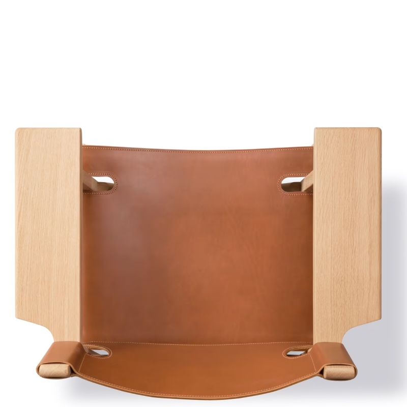 Présenté ici dans sa version en chêne blanchi associé à un cuir aniline coloris cognac, le Spanish Chair affirme une présence à la fois chaleureuse et élégante. Le bois massif met en valeur la structure robuste du fauteuil, tandis que le cuir, sélectionné pour sa qualité exceptionnelle, se patinera magnifiquement avec le temps, renforçant son caractère unique. D’autres finitions sont disponibles sur devis au 01 53 30 33 30.