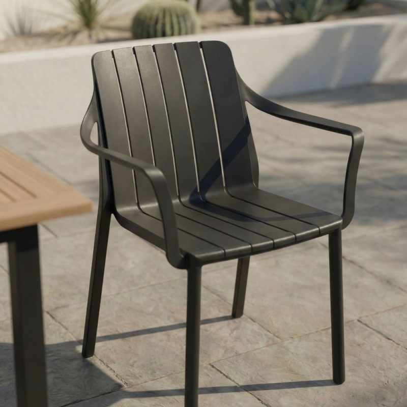 La chaise Tiberina de la marque italienne de mobilier d’extérieur Nardi se distingue par ses lignes douces et arrondies, qui lui confèrent une allure contemporaine. Cette chaise monobloc avec accoudoirs, doté de pieds circulaires, offre une silhouette aérienne tout en assurant une excellente stabilité. Chaise en polypropylène renforcé de fibre de verre, traitée anti-UV et teintée dans la masse, garantissant une tenue durable des couleurs et un fini mat raffiné. Conçue pour résister aux intempéries et à un usage quotidien intensif, la chaise de jardin empilable Tiberina est également équipée de patins antidérapants pour un confort accru. Sa résine recyclable témoigne de l’engagement environnemental de la collection.