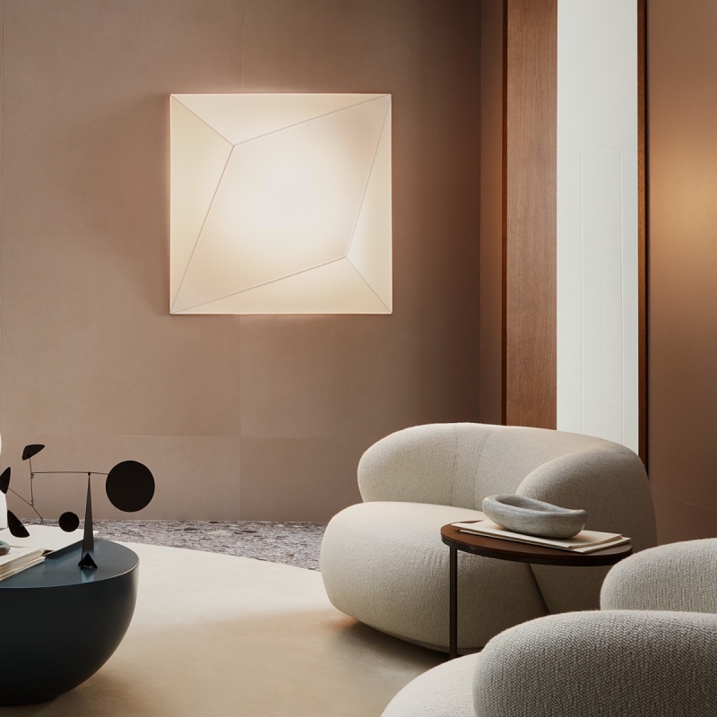 UKIYO est une applique ou plafonnier acoustique de la marque de luminaires design italien Axolight. Non seulement la lampe design est splendide dessinée par Manuel Vivian, inspirée du graphisme strict japonais. L'applique minimaliste est également insonorisante et performante, pour usage résidentiel ou espaces publics, restaurants, bars, hôtels, espace de coworking etc.